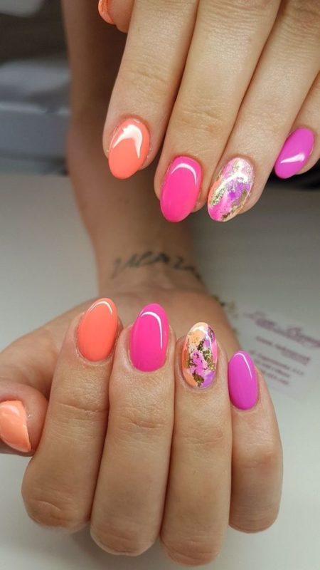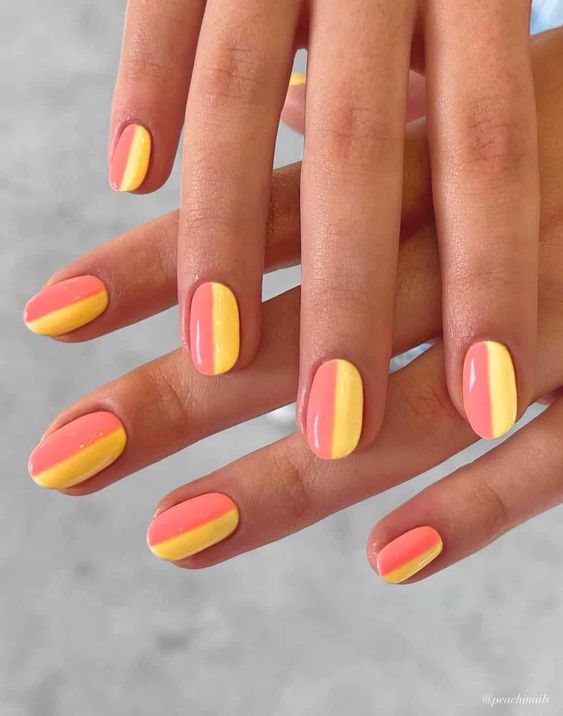 In case you’re keen on colourful colours, this attention-grabbing and unique duo-tone thought brings in combination neon red and peach tones at the side of a slightly of shimmering gold foil. The full of life red completely enhances the tender peach, generating a full of life and relaxing summer time shape. It’s a simple but important look this is certain to seize consideration.