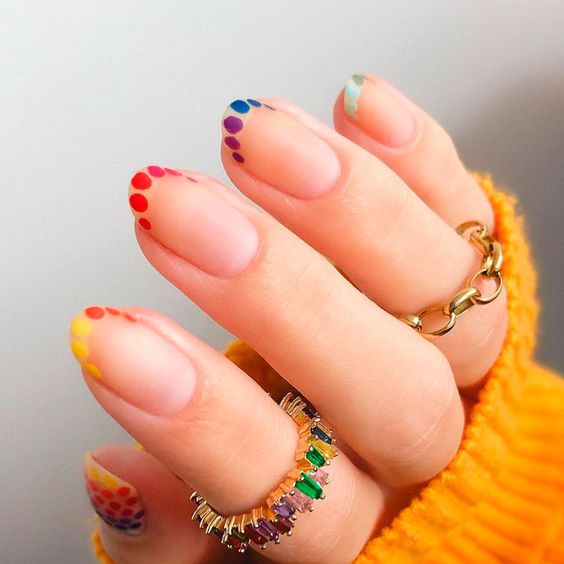 Upload a slightly of pleasure in your summer time with this colourful nail artwork. Blissful dots in numerous sun shades dance throughout each and every nail, shooting the infectious spirit of summer time fairs, carnivals, and colourful boulevard festivals.